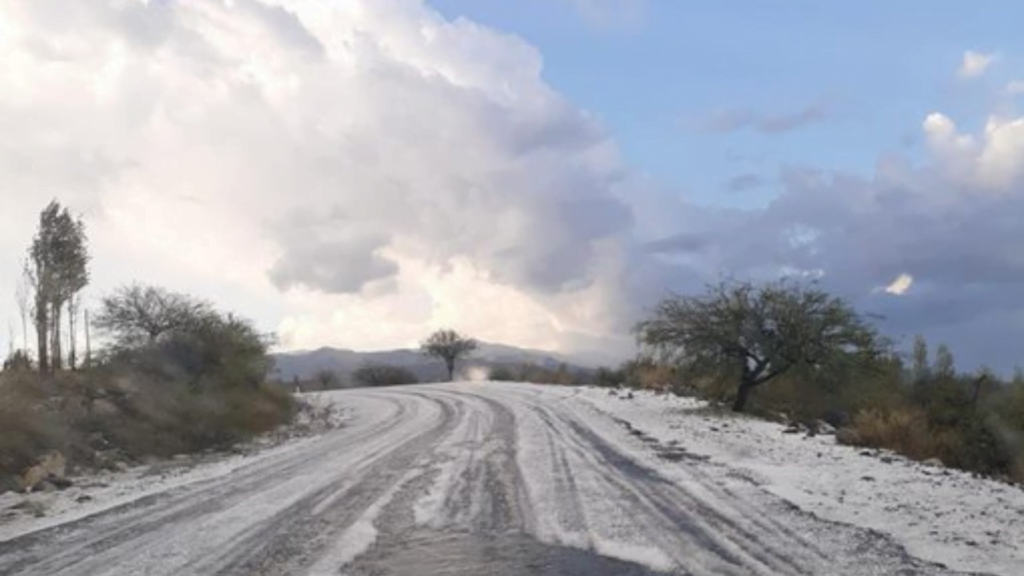 “Alta granizada en Amaicha del Valle, que se encuentra a 1.900 msnm, al oeste de Tucumán, en el Valle del Yokavil. Poquísimos árboles para buscar refugio si te sorprende la granizada en la lluvia”, publicó en sus redes el periodista tucumano David Correa.