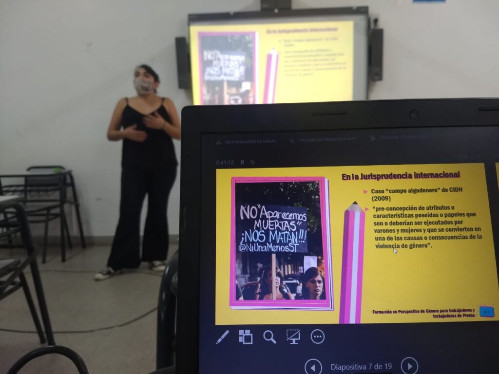 El objetivo de la capacitación es brindar herramientas para el abordaje de la comunicación desde una perspectiva de género, reflexionar sobre las prácticas comunicacionales actuales, y pensar abordajes posibles para la prevención de discriminaciones por razones de género.