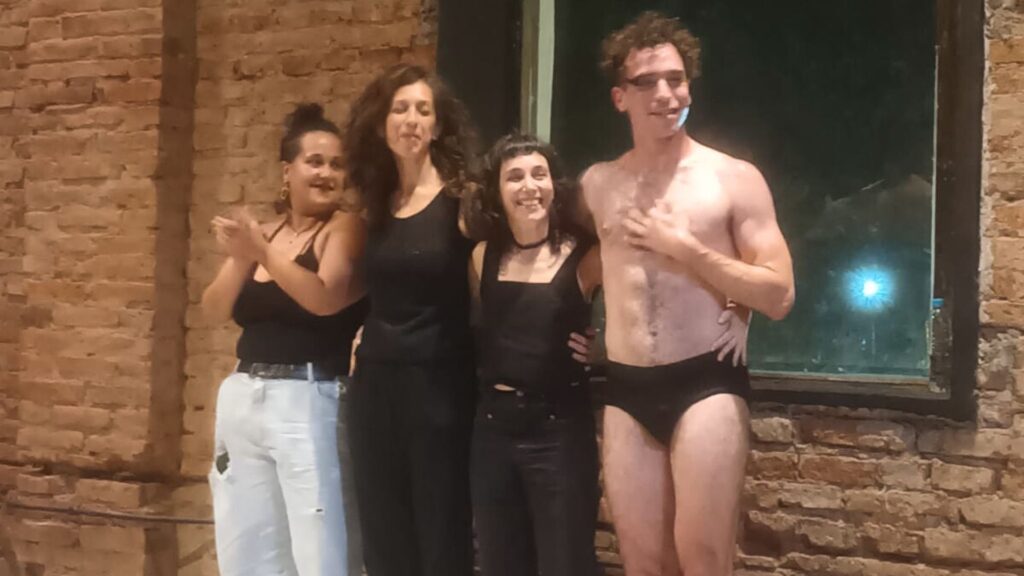 La despedida parece fundirse con la obra. Guille aparece solo, todo está encendido. Aplaudimos, creo que todos sorprendidos y emocionados (no es común ir a una obra de teatro danza, y menos para mí, que suelo picarme por entender, pero aquí me ganó el sentir). Aparece la bella Ana Teitelbaum, su directora y maestra de Guille en la danza, aplaudimos. Johna me dice “Sentí que estaba teniendo sexo”. La gente se va retirando, aparece Guille en una bata blanca. Lo besamos y nos llena de sudor, pero no nos importa. La gente se amontona, parece que todos se quieren mojar.