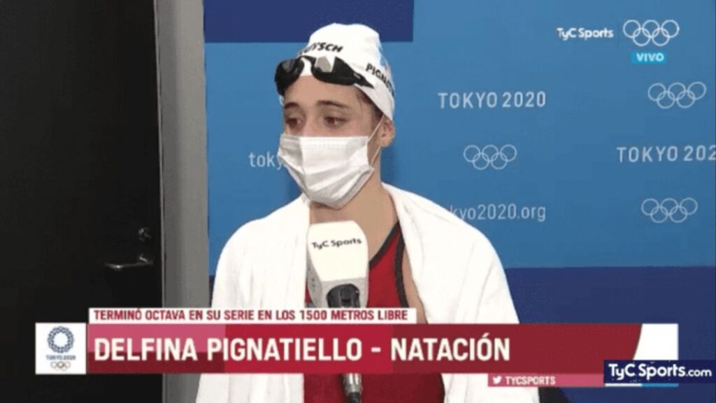 La nadadora argentina Delfina Pignatiello quedó octava en su debut olímpico y no pudo clasificar a la próxima ronda en la prueba eliminatoria de 1500 metros libres en los Juegos Olímpicos Tokio 2020, en la que se impuso la estadounidense Katie Ledecki.