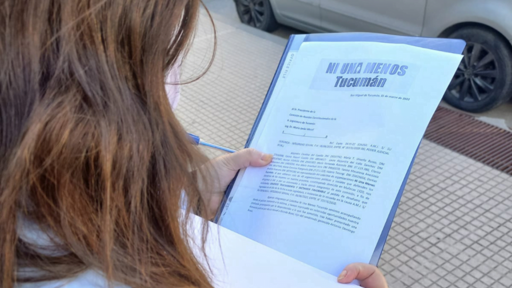 Desde el Colectivo Ni Una Menos, que reúne a más de 40 organizaciones sociales, políticas y feminista, realizaron una presentación ante la Legislatura de Tucumán para exigir “urgente tratamiento y dictamen favorable” al pedido de desafuero solicitado por el juez Guillermo Matías Puig, a cargo del Juzgado de Instrucción Conclusional I, contra el legislador Ricardo Bussi, presidente del partido Fuerza Republicana.