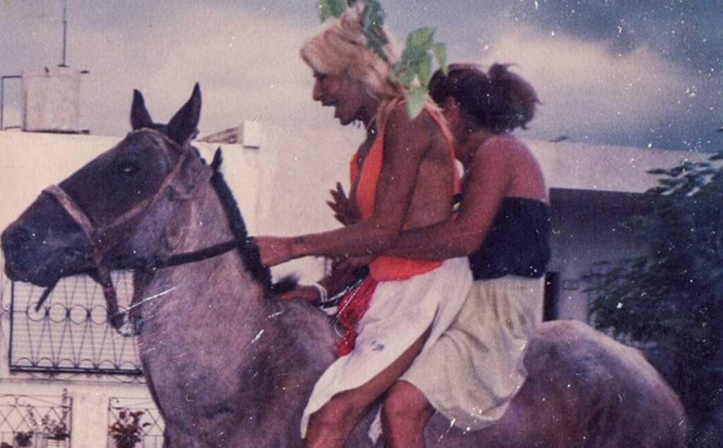 Silvita se prendió y subió. Yo había llevado mi cámara de fotos media vieja, de esas que eran finitas y largas. Justo en ese momento que Silvita va a subir, les digo: “Paren…paren. La Floripon les va a sacar una foto. Le di la cámara a la Flori y justo en el momento en que va a sacar la foto la Flori, la Laiza le pega fuerte con los tobillos internos en la panza del caballo. Y el caballo reacciona pegando un salto con las dos patas delanteras y la Silvita gritaba “puto…puto…espera, no me acomode” y salió de raje el caballo con ellas y nosotras con la Floripon nos matamos de risa. Y seguimos caminando en la misma dirección por esas calles de tierra con mucho verde.