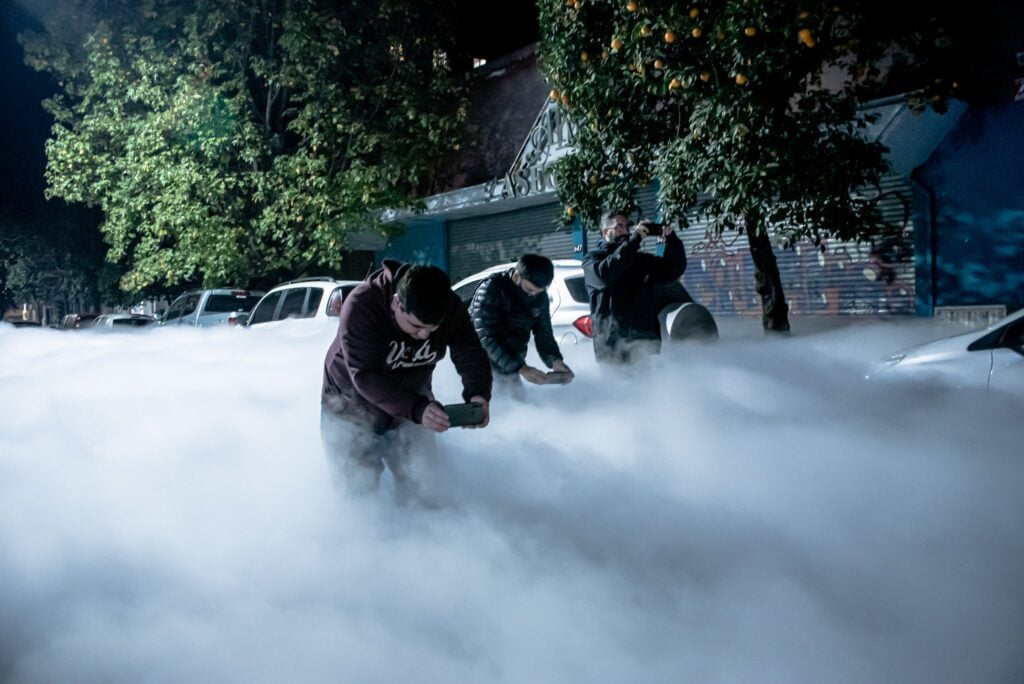 Una válvula de oxígeno del sanatorio Modelo, en la calle Laprida 500, sufrió una rotura y cubrió de un manto blanco la zona norte San Miguel de Tucumán. Las imágenes y videos inundaron twitter.