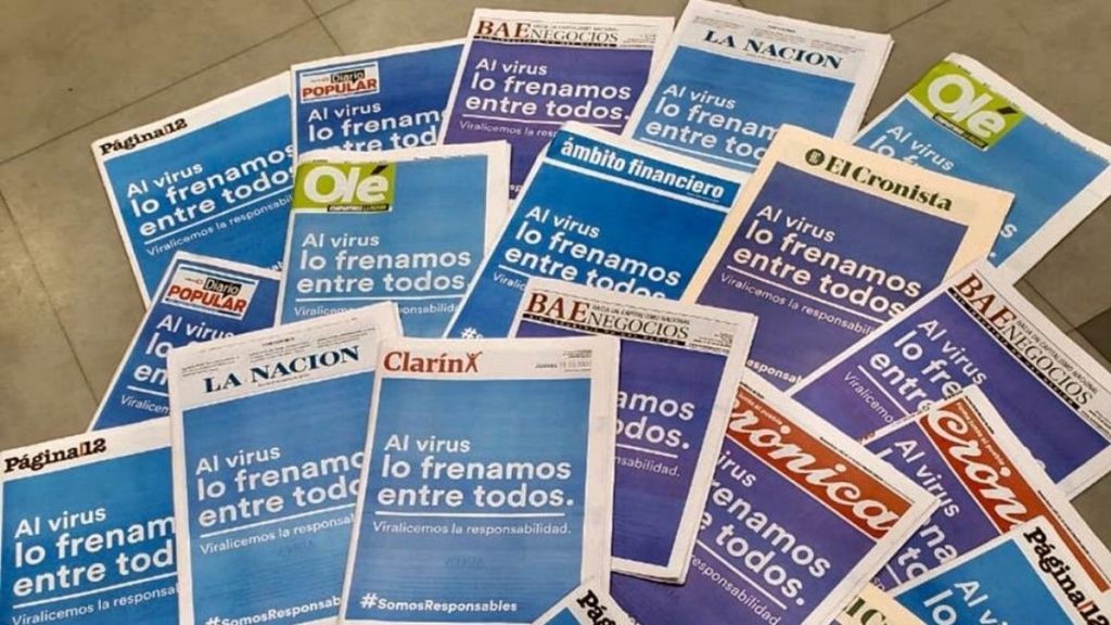 La iniciativa surgió de la Asociación de Entidades Periodísticas Argentinas (Adepa) y consiste en la publicación del mensaje “Al virus lo frenamos entre todos. Viralicemos la responsabilidad #somosresponsables”, y una serie de consejos fundamentales para prevenir el virus.