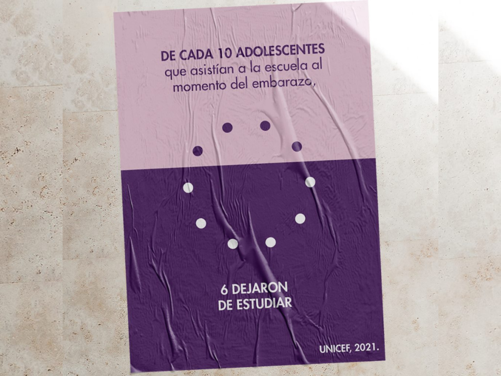 El 30% de las jóvenes que abandonaron el secundario lo hicieron por embarazo o maternidad (MSAL y UNFPA, 2021), casi la mitad de las adolescentes de 18 y 19 años que son madres no completó el secundario (M. Desarrollo Social, 2018) y de cada 10 adolescentes que asistían a la escuela al momento del embarazo, 6 dejaron de estudiar (UNICEF, 2021).